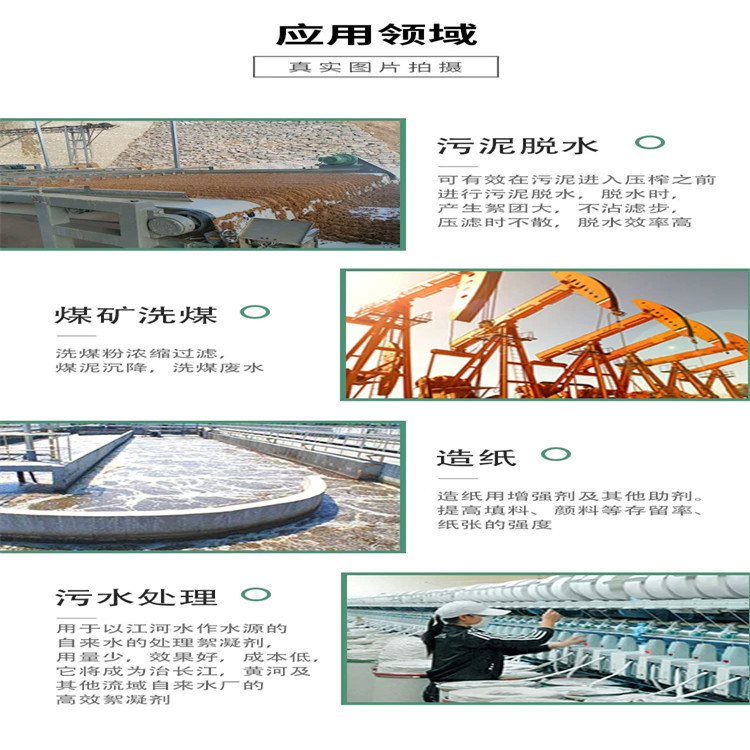 聚丙烯酰胺用途(細節不同)聚合氯化鋁穩定性好,廣泛應用于飲用水及造紙、印染、紡織工業以及生活污水的凈化處理。 聚丙烯酰胺相對聚合氯化鋁具有更大的優勢,就是稀釋比例小,用途更加廣泛,能夠克服某些難以處理的污水以及濃度高的廢水處理。陰離子聚丙烯酰胺在礦上洗煤行業的應用非常廣泛,陽離子聚丙烯酰胺是污泥脫水必不可少的產品,非離子聚丙烯酰胺在涂料增稠行業得到了廣泛的應用。